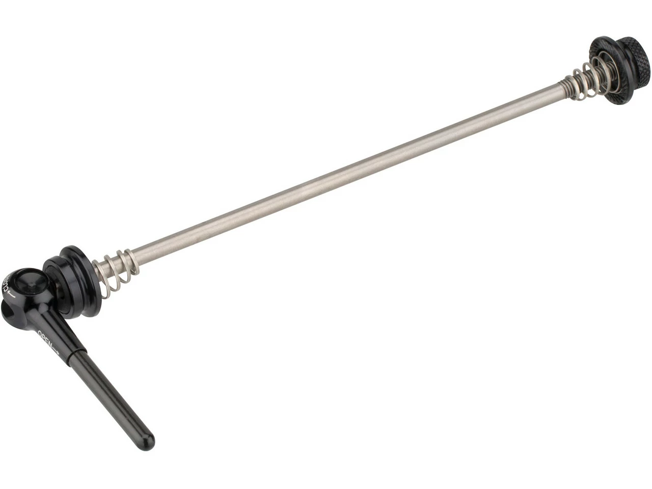 Spécifications :Largeur :roue avant : 100 mm, roue arrière : 130 mmDiamètre de l’axe :5 mmInformations techniques :Utilisation :roue avant : 9 x 100 mm, roue arrière : 10 x 130 mmType :réglage rapide, excentrique à butéeMatériau de l’axe :titaneMatériau du levier:aluminiumMatériau du capuchon excentrique / contre-écrou:aluminiumCaractéristiques :levier anodiséContenu :1 paire de serrages rapides de moyeu 3min19sec