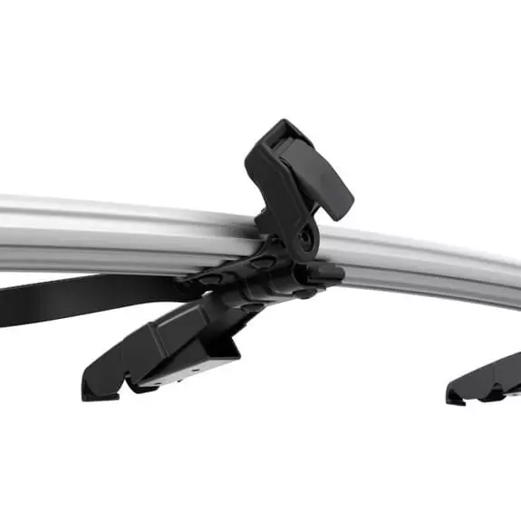 – Fixez le vélo et l’adaptateur au support pour vélos avec le système Thule One-Key (fermetures inclues)