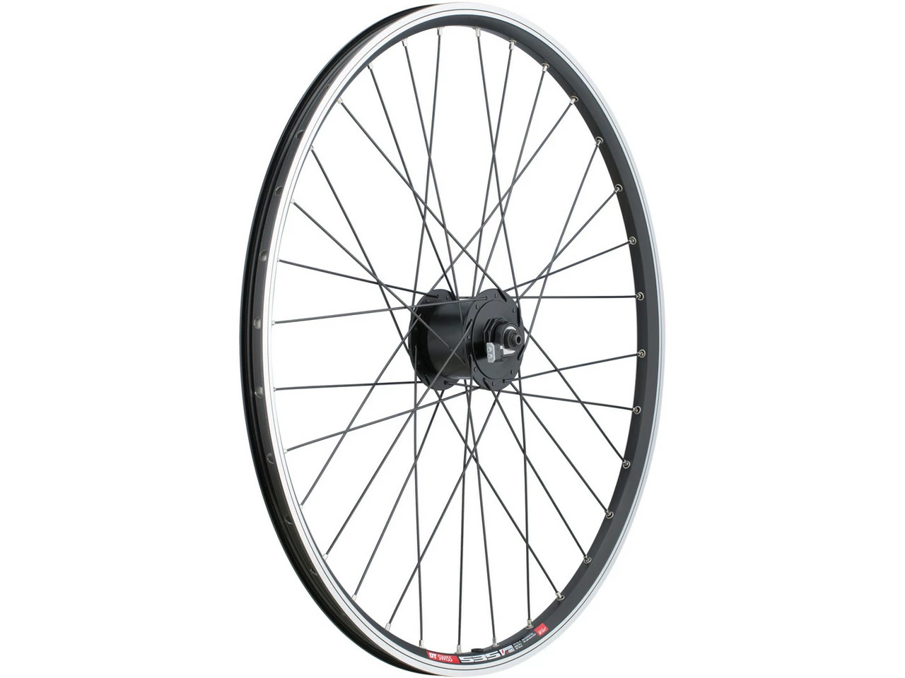 Roue bc basic de 26″ avec jante DT Swiss 535, moyeux Shimano T3000 (ou moyeu à dynamo) et rayons DT Swiss Factory.