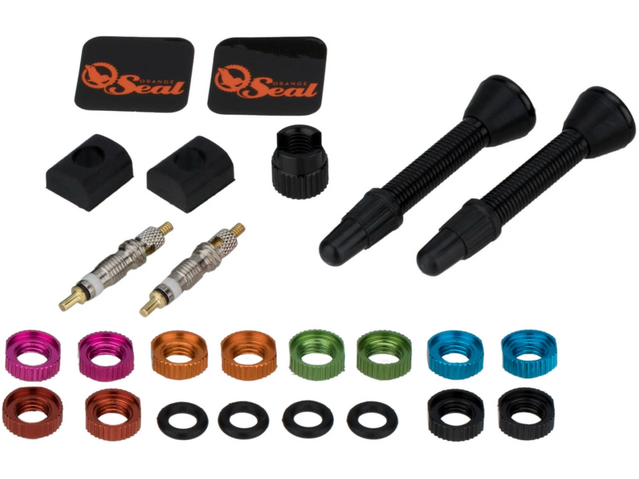 Contenu :1 x fluide d’étanchéité Orange Seal Subzero Sealant 273 ml2 x valves tubeless Orange Seal Versavalve1 x ruban de jante Orange Seal1 x aide au remplissage Orange Seal1 x outil Orange Seal Versavalve RVC